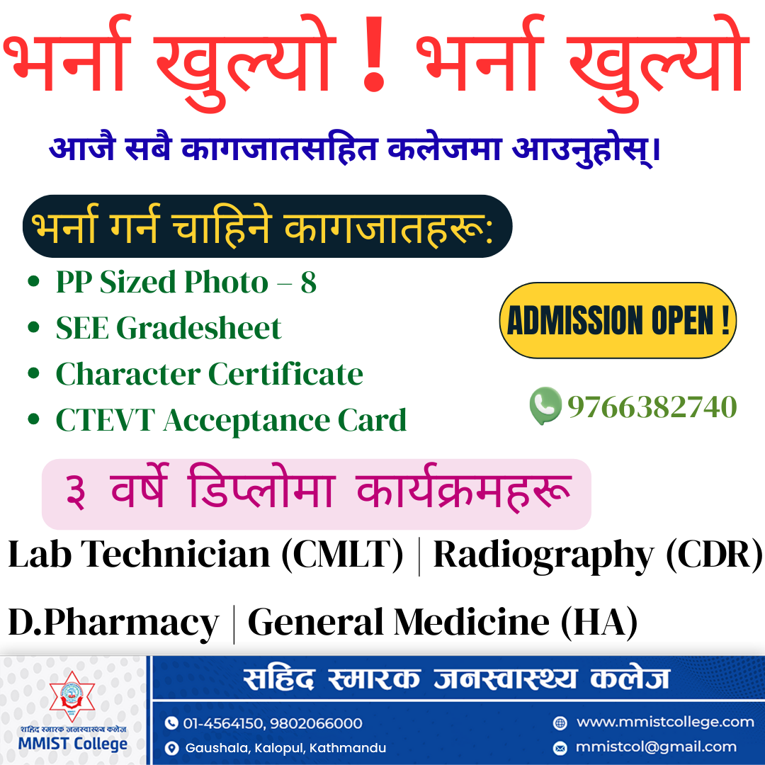 ADMISSION OPEN : Lab Technician (CMLT) Radiography (CDR) PCL Nursing D.Pharmacy General Medicine (HA)